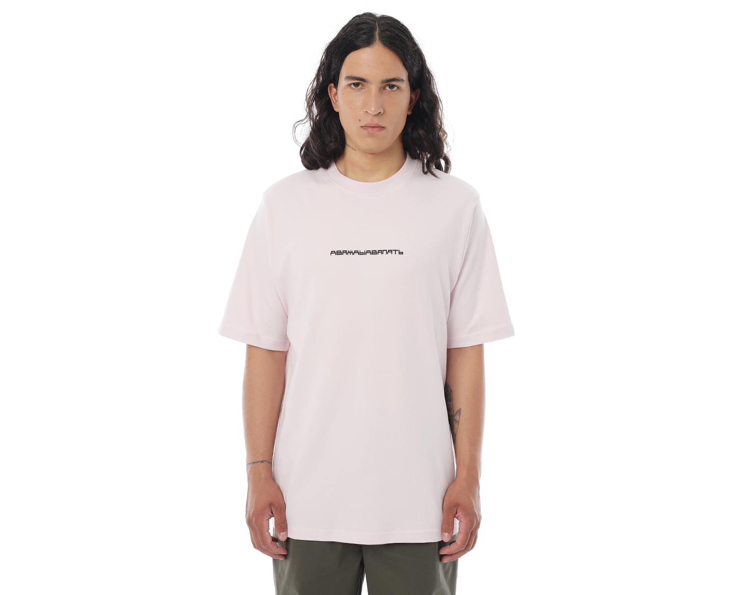 Футболка. Бледно-розовая. Посадка мидлфит. 100% хлопок, плотность 180 грамм.  Объемный принт "дваждыдвапять" в технике высоко-рельефной печати flextran.