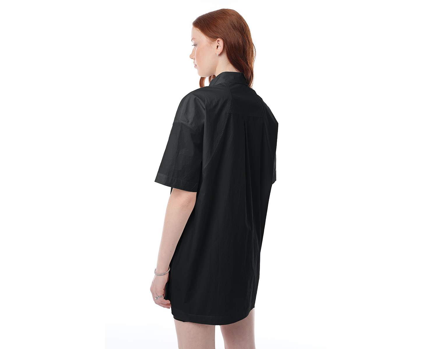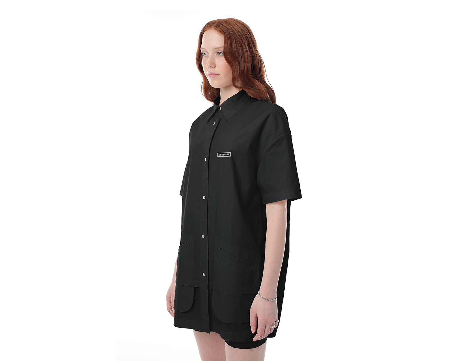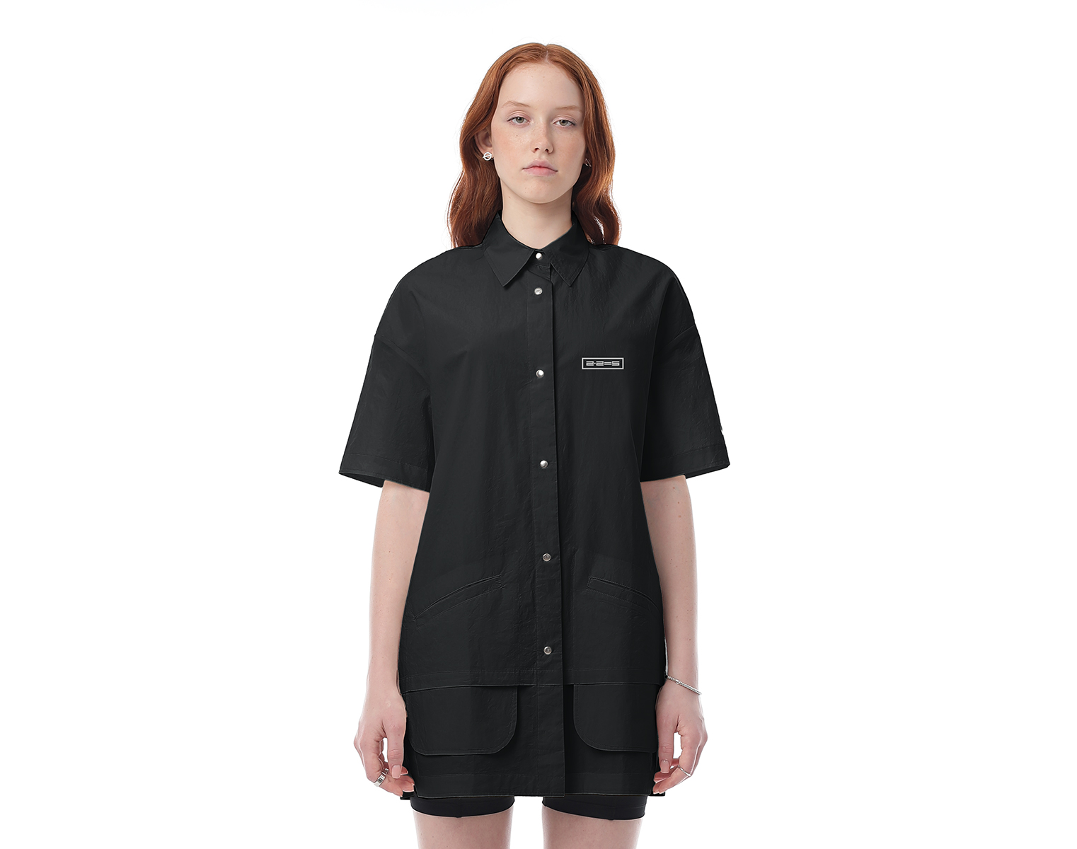 Рубашка с короткими рукавами на манжете, с двумя прорезными карманами спереди. Кремовая. Мидлфит. Модель декорирована печатью в технике "шелкография". Состав: 100% хлопок с "crash" эффектом, плотность 170 грамм.