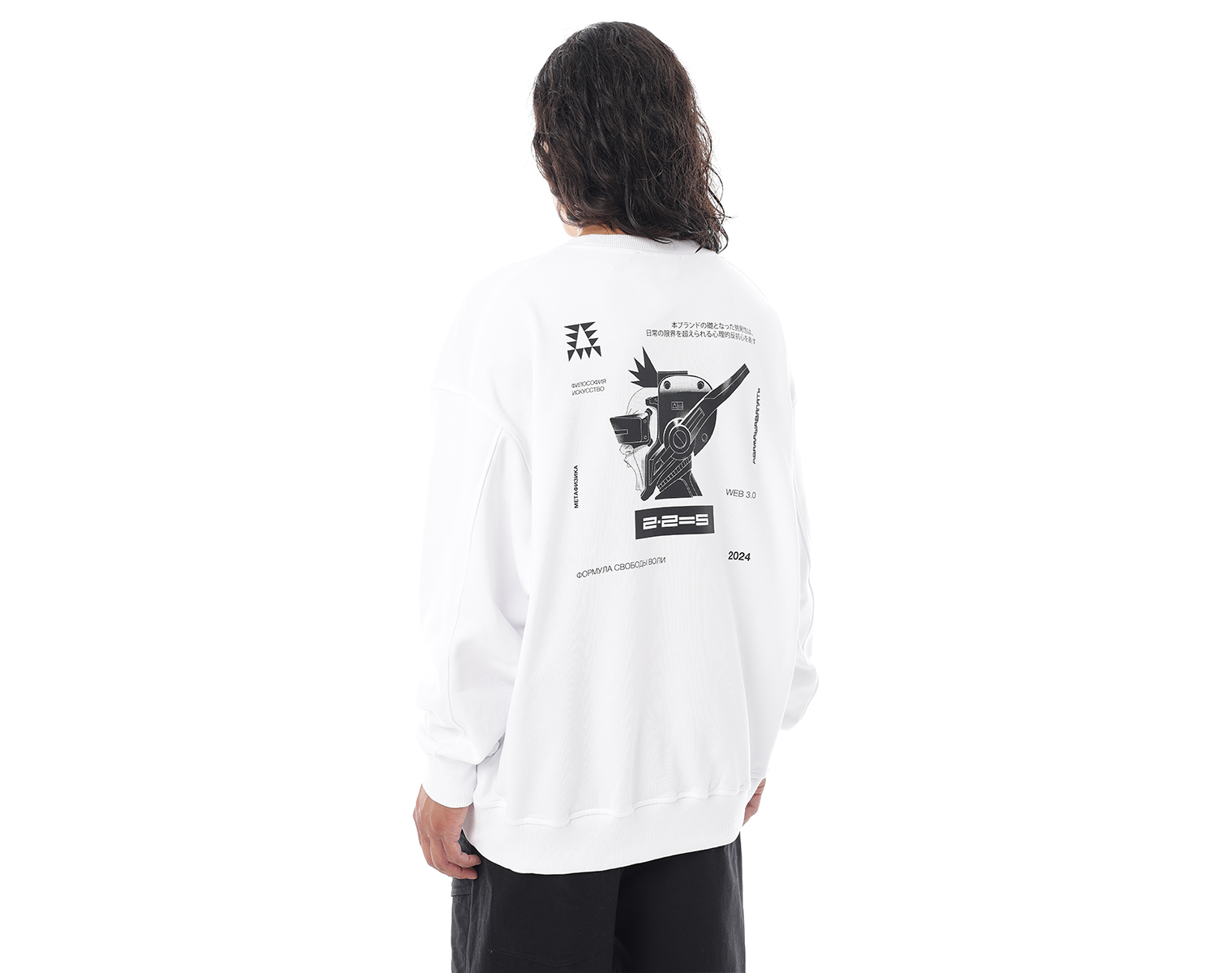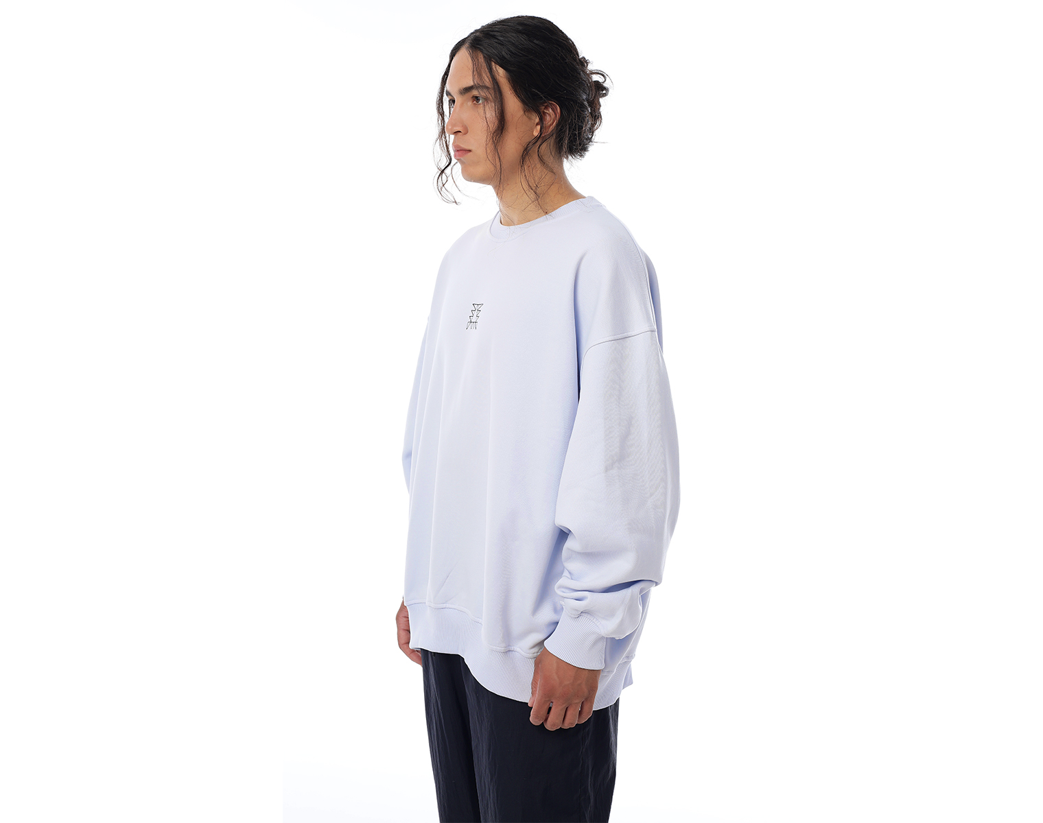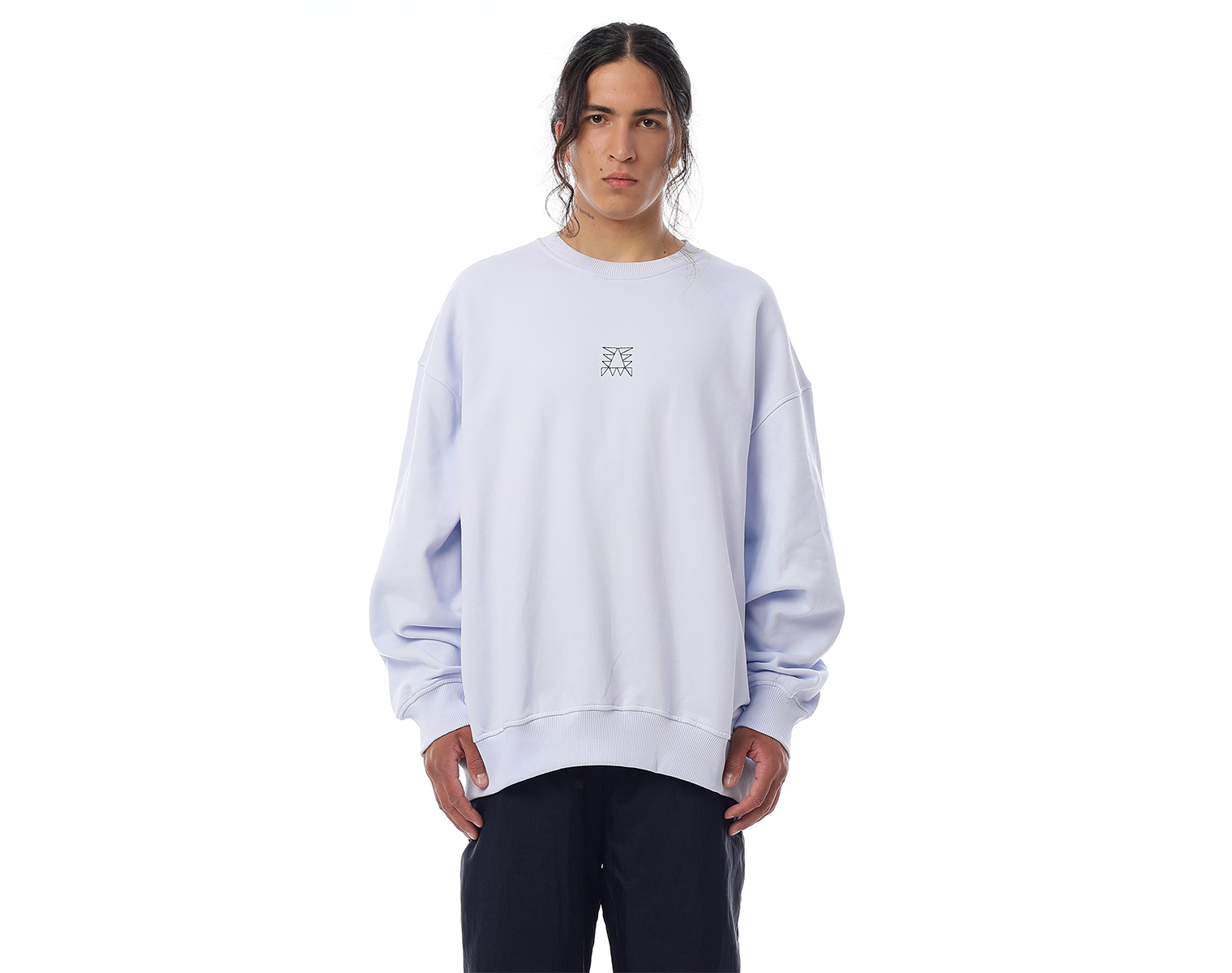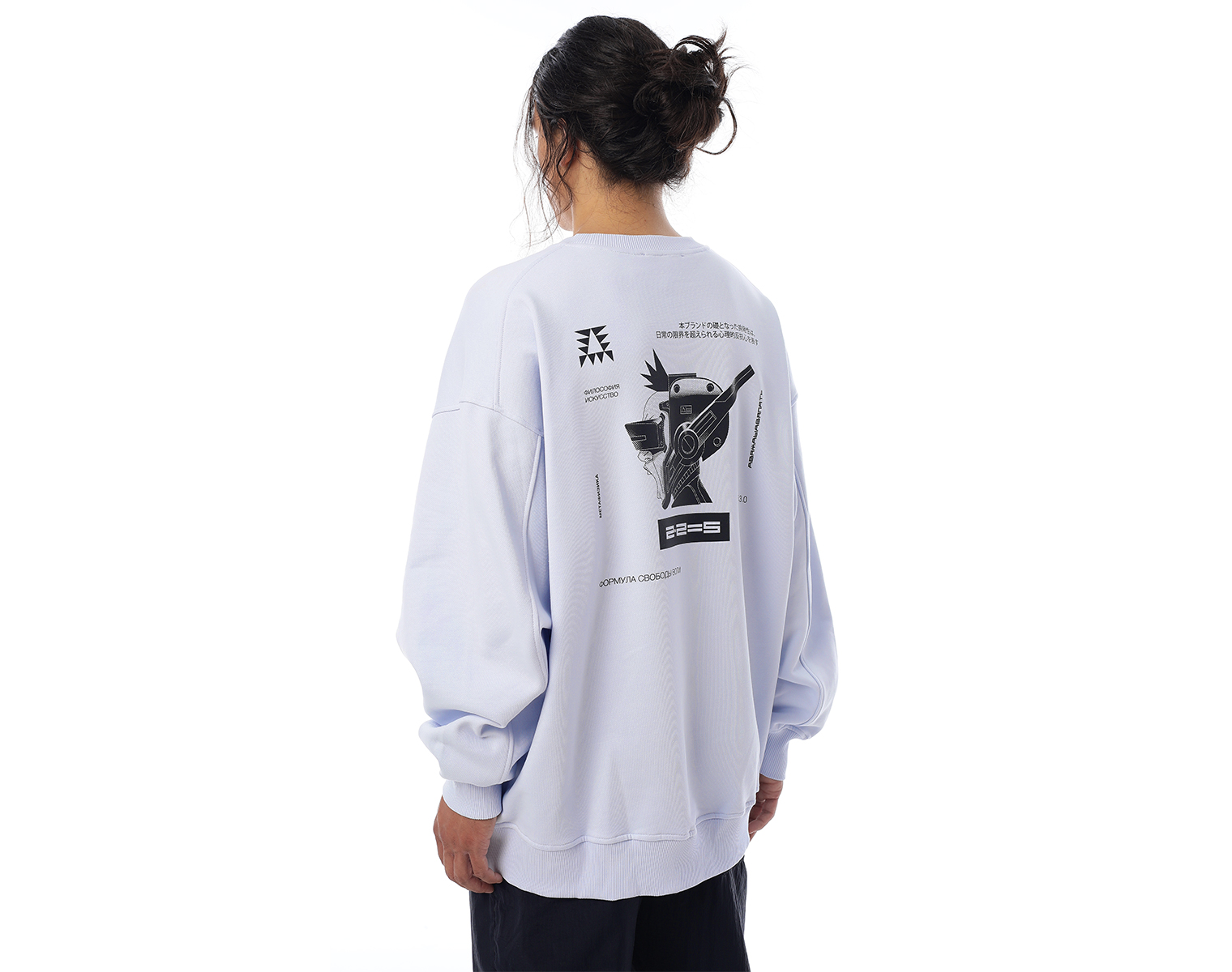 Свитшот. Бледно-голубой. Посадка оверсайз. Футер 100% хлопок, плотность 350 грамм. Модель декорирована вышивкой в виде буквы "Д" и на спинке печатью в технике DTF.