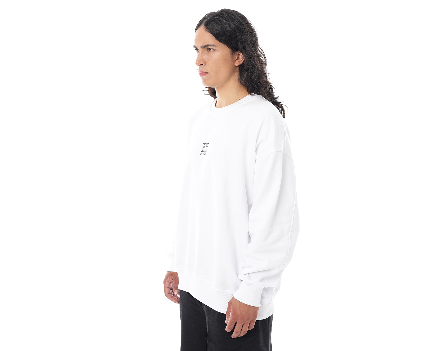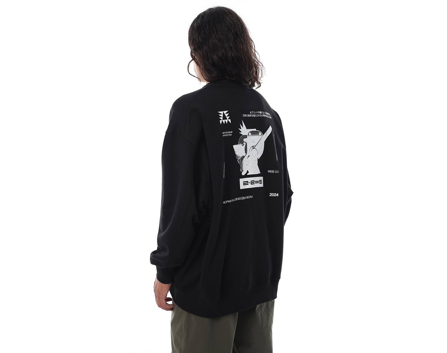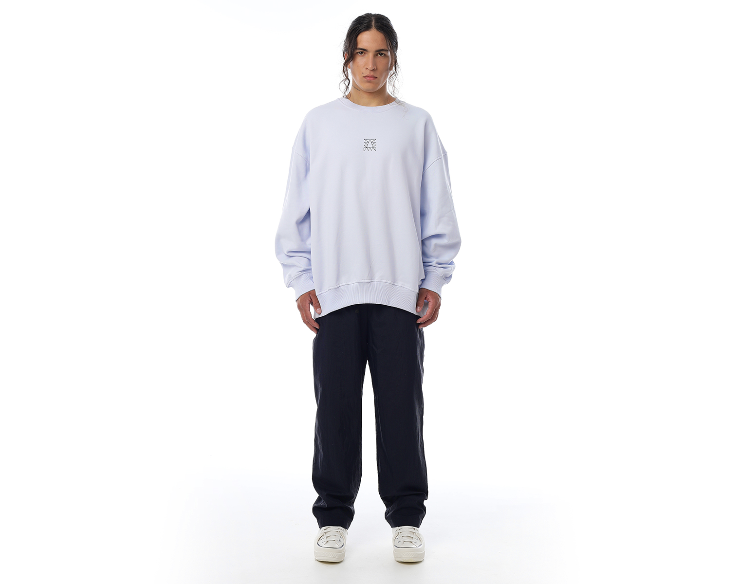 Свитшот. Бледно-голубой. Посадка оверсайз. Футер 100% хлопок, плотность 350 грамм. Модель декорирована вышивкой в виде буквы "Д" и на спинке печатью в технике DTF.