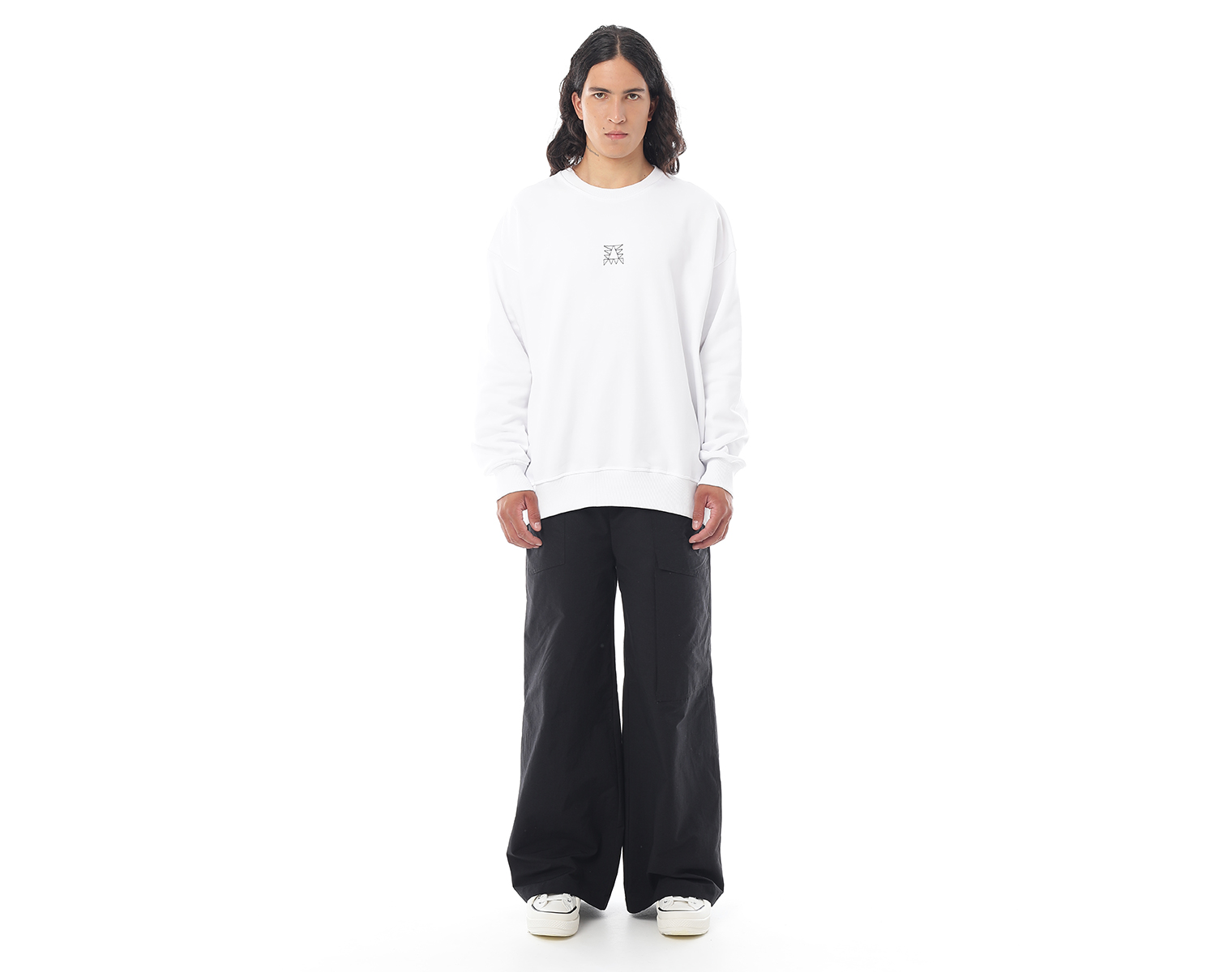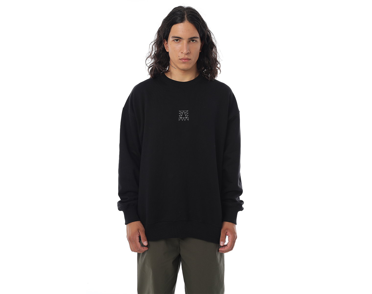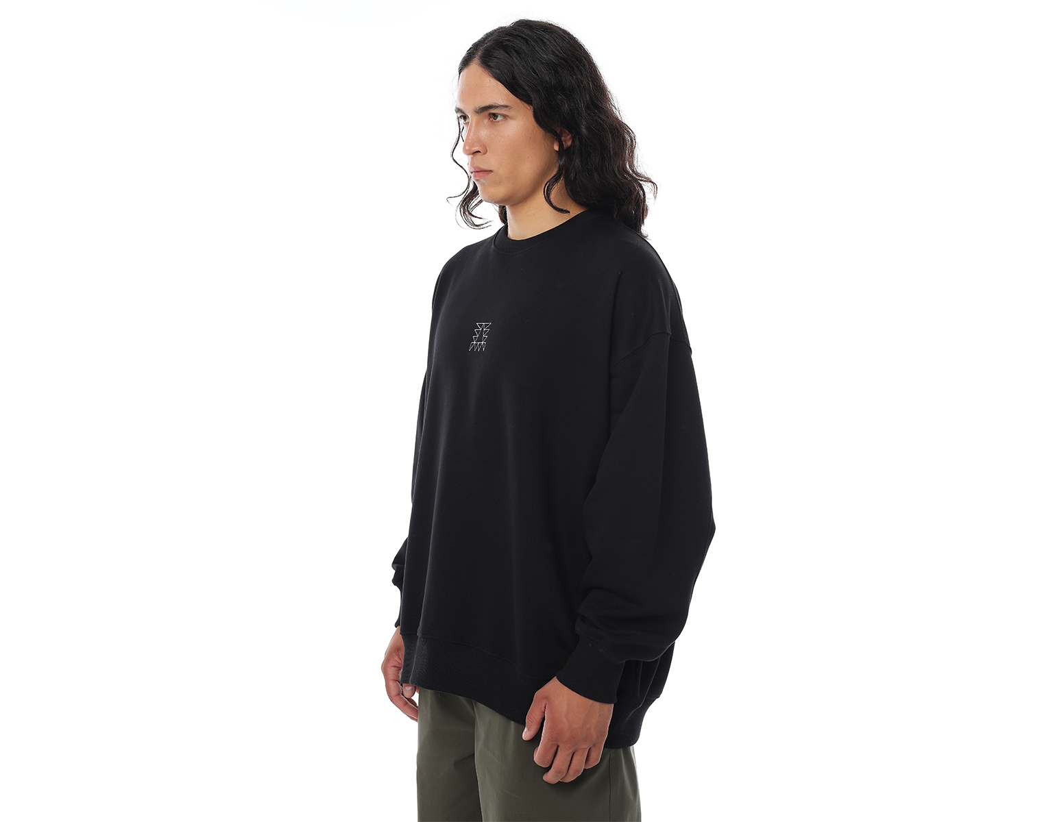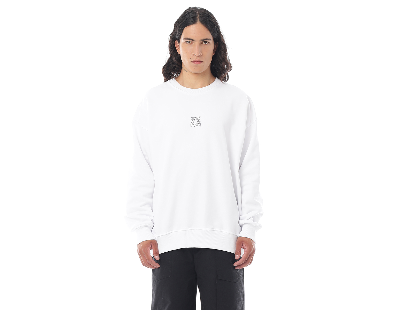 Свитшот. Бледно-голубой. Посадка оверсайз. Футер 100% хлопок, плотность 350 грамм. Модель декорирована вышивкой в виде буквы "Д" и на спинке печатью в технике DTF.