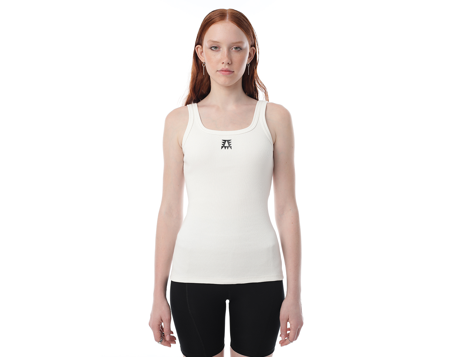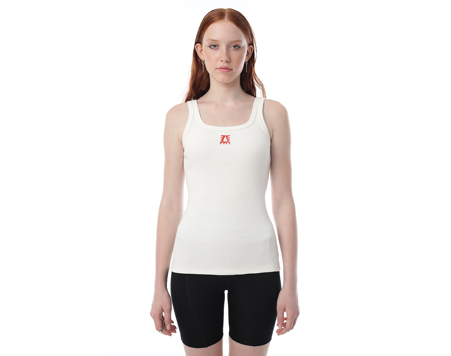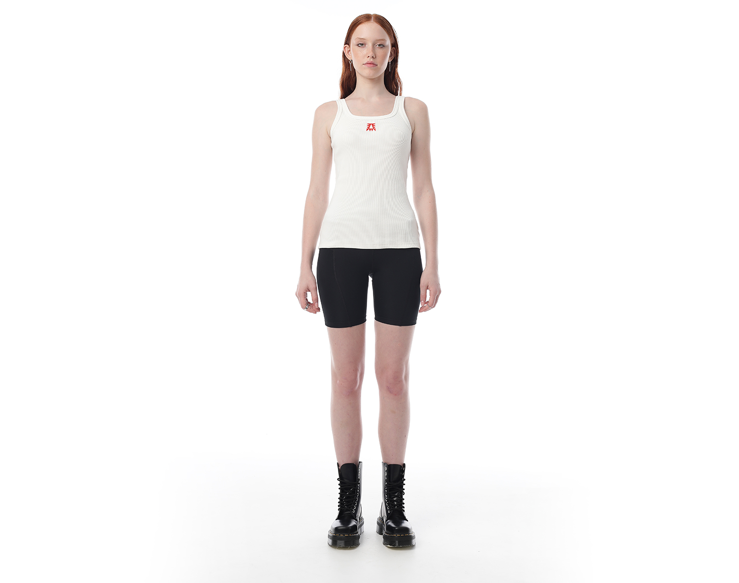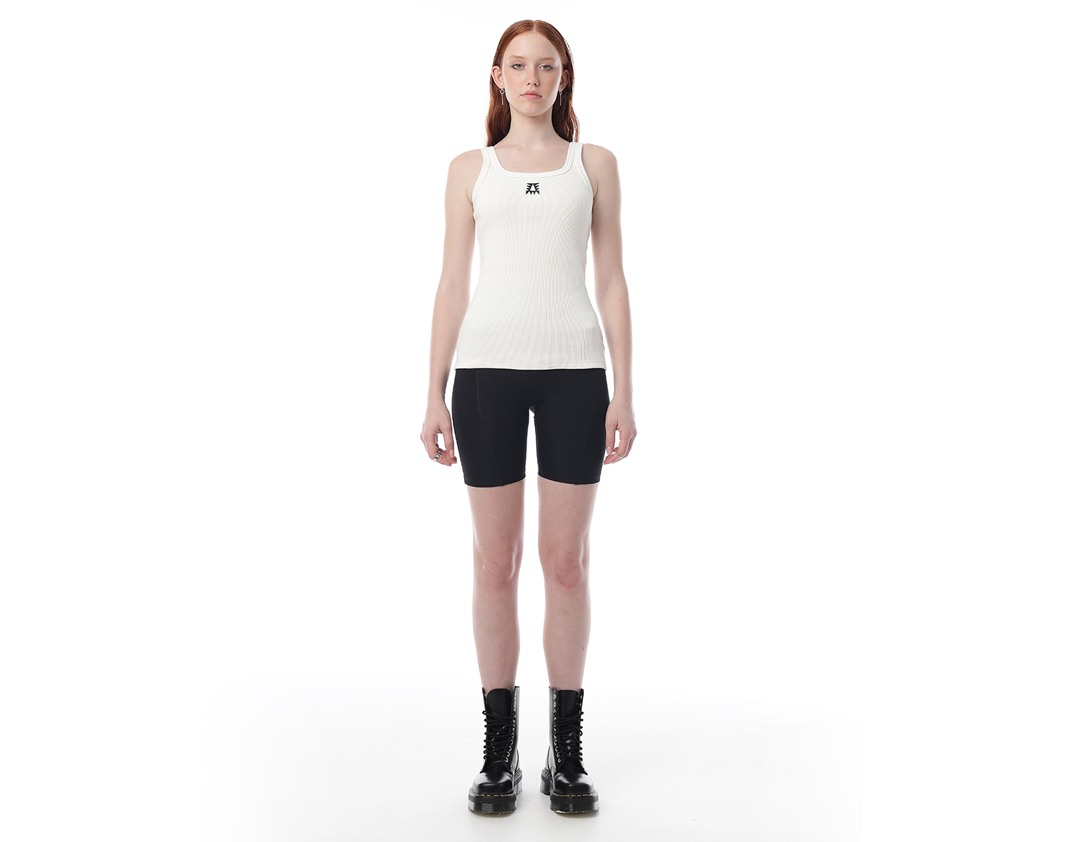 Майка цвета "ecru" из кашкорсе. Слим. 95% хлопок 5% эластан. Объемный принт в виде буквы "Д" в технике высоко-рельефной печати flextran. 420 грамм.