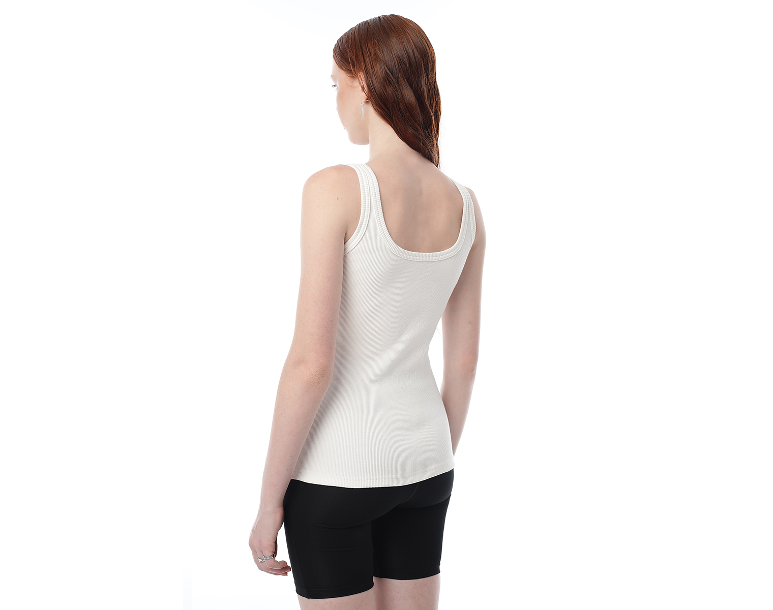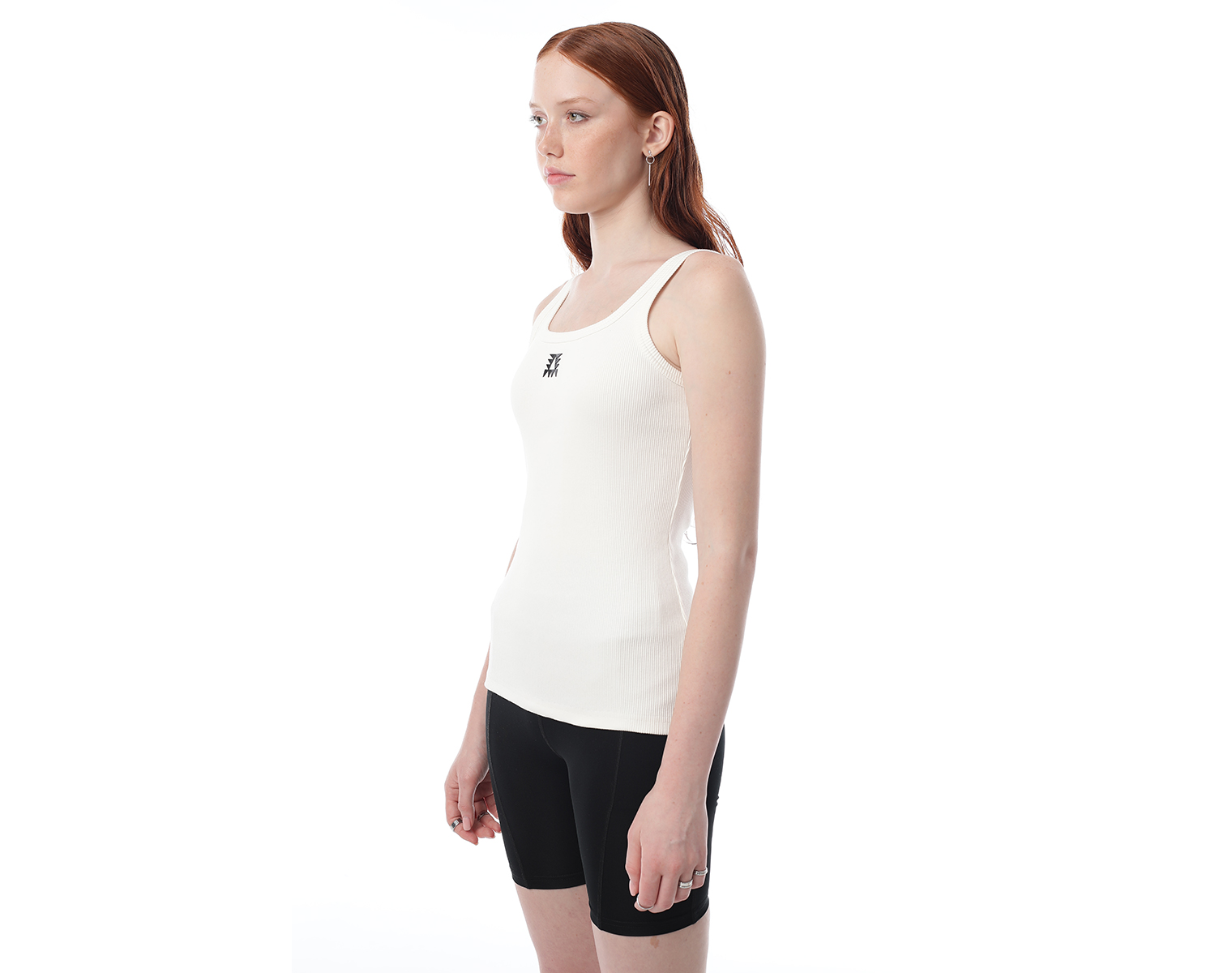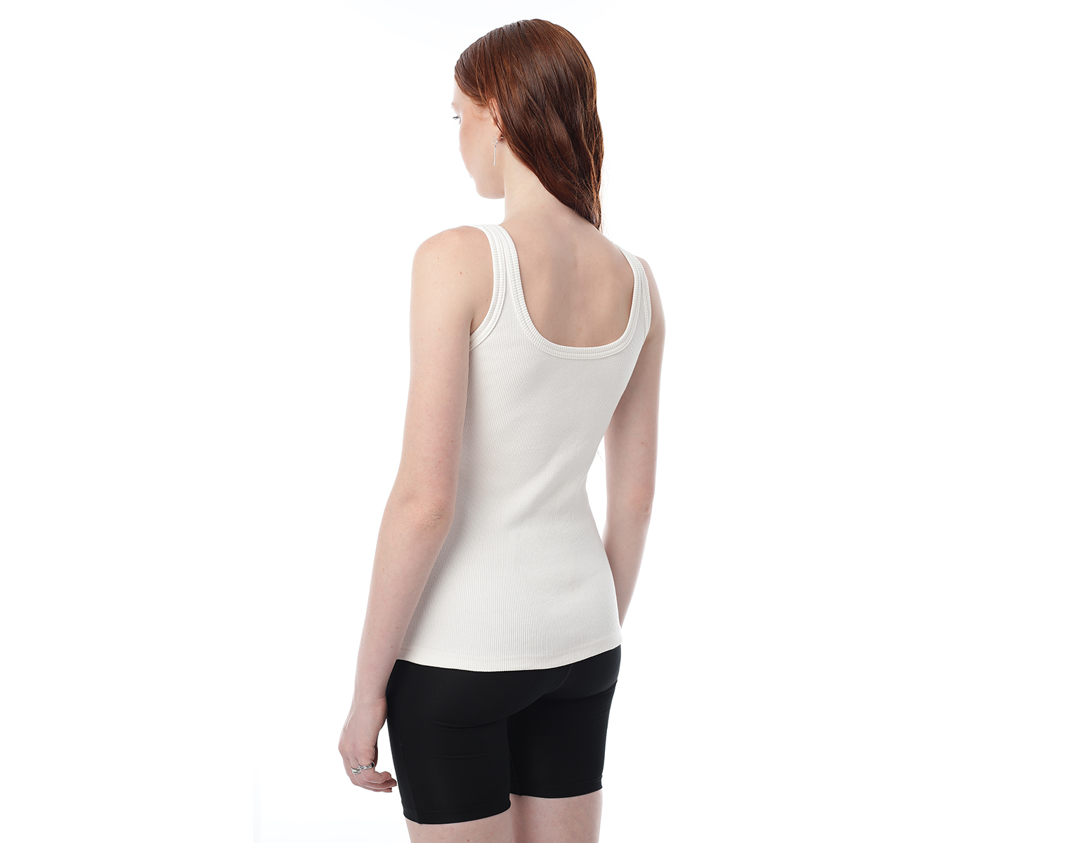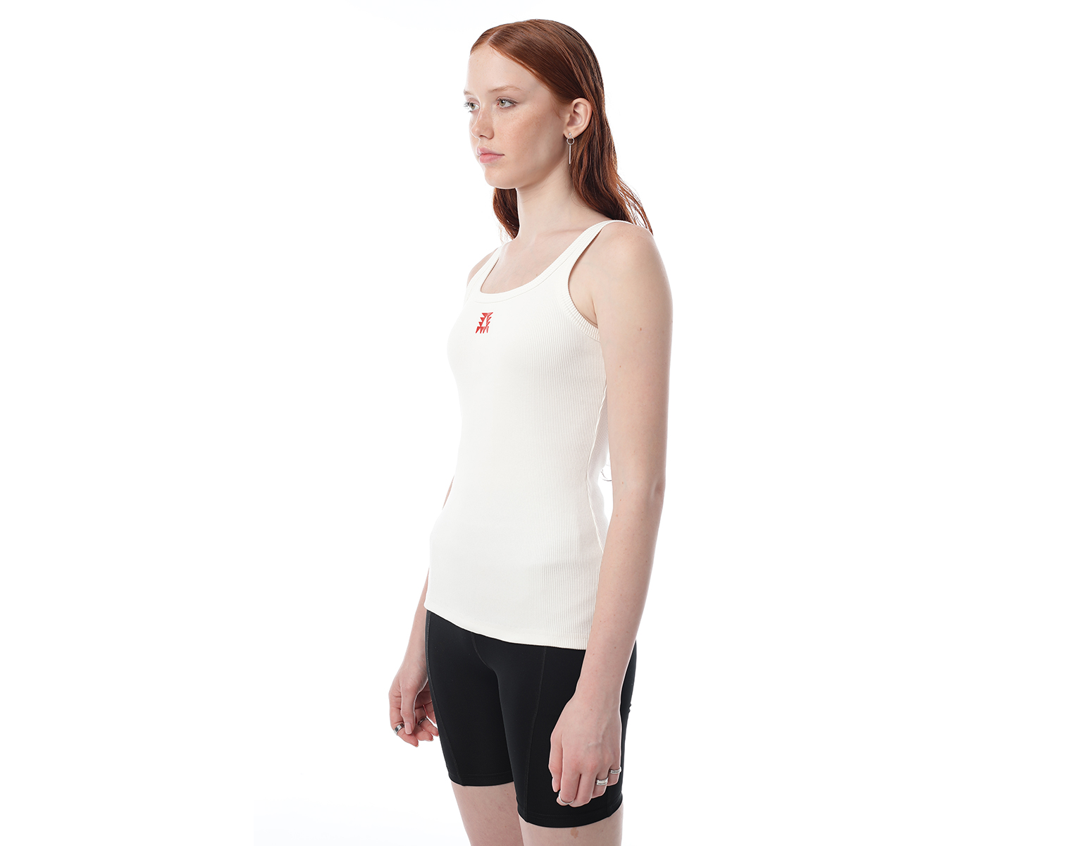 Майка цвета "ecru" из кашкорсе. Слим. 95% хлопок 5% эластан. Объемный принт в виде буквы "Д" в технике высоко-рельефной печати flextran. 420 грамм.